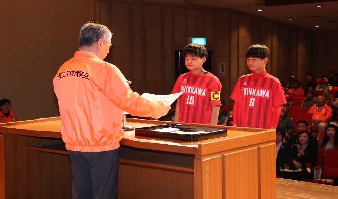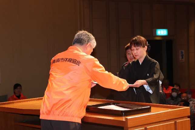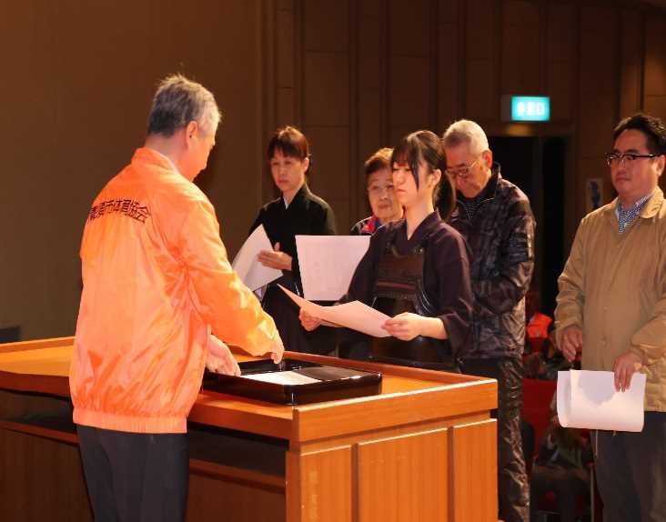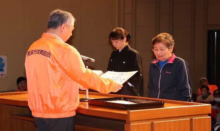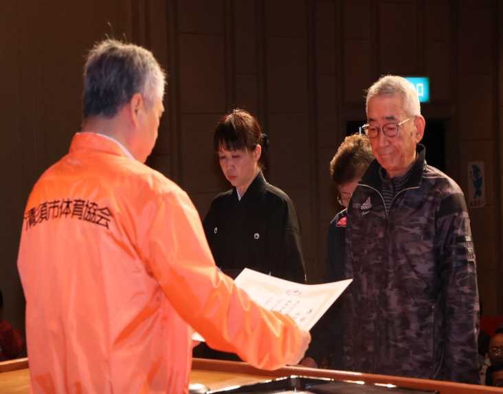 表彰式では、令和6年度に優秀な成績を収めた2団体と個人1名、永年功労賞として1名が表彰され、賞状等が贈られました。