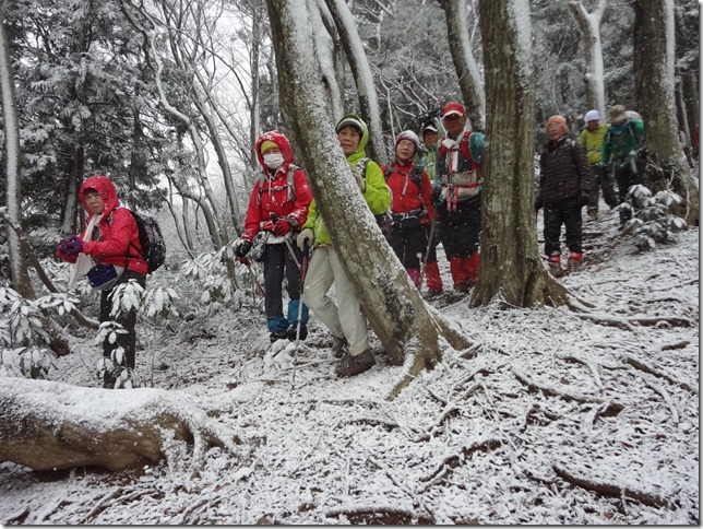 当日、登山開始時は薄曇り状態で良好、しかしながら頂上近く迄登りつめた時強風と雪で厳しい状況に追い込まれ危険すら感じる状況となった。
