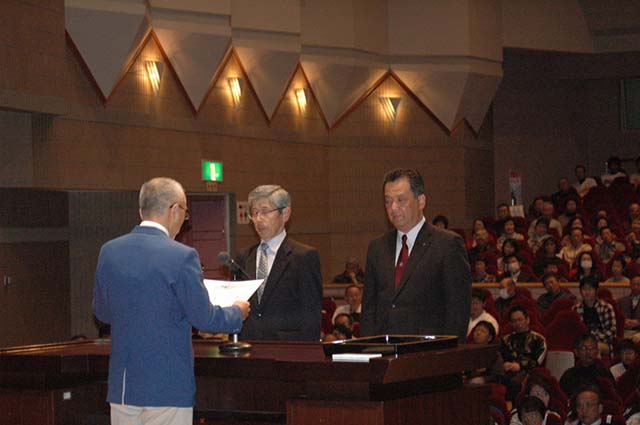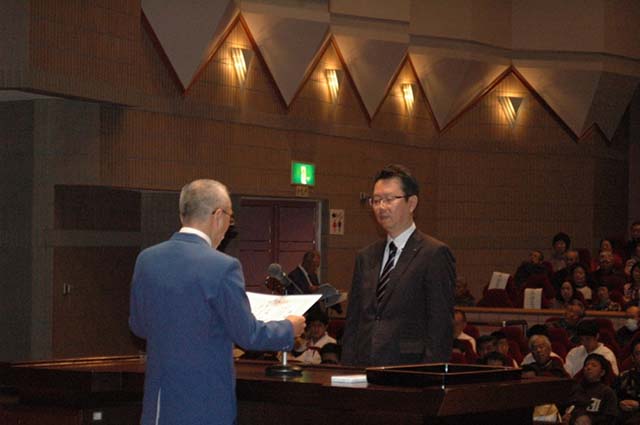 開会式に先立ち表彰式が行われ、平成27年度優秀な成績を収めた5団体と個人4名 又、永年功労として1名が表彰されました。