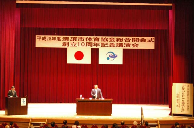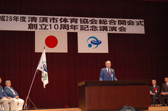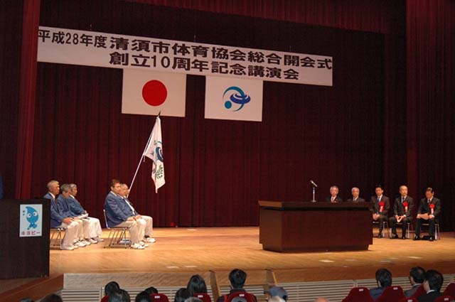 平成28年4月10日 清須市春日公民館において、清須市体育協会に加盟する27部会 が参加し、清須市体育協会の総合開会式が盛大に開催されました。